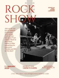 Join us for a high-energy night of music as our School of Rock students perform hits from Taylor Swift, Pop/Rock, ’90s classics, ’80s hair metal, and ’70s rock. Celebrate an amazing season with an electrifying showcase of talent, passion, and pure rock ’n’ roll!